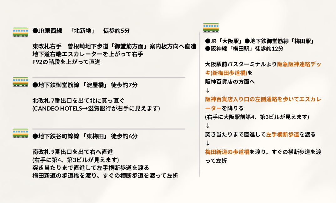 ■JR「大阪駅」/地下鉄御堂筋線「梅田駅」/阪神線「梅田駅」徒歩約12分